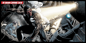 Issue 18 of Earth 2 certainly has it's cup filled to the brim of action, intrigue and surprises, which isn't anything new from former writer James Robinson's run. This time around, Taylor inserts more recognizable counterparts of DC Comics' superheroes on this world as opposed to the Golden Age ties Robinson had frequently utilized before. The new Dark Knight figures heavily in this storyline, as he proceeds to help the World Army and the remaining wonders, gather aid in stopping Superman and his allies from conquering the planet. The changes with the new characters would be jarring for most longtime readers with the shift in the use of more familiar heroes to gain a wider audience. It's still too early to see what Taylor's plans are with the previous Golden Age theme but suffice to say, the cast is continually rounding out with more modern wonders than before. Even the base of operations used by the World Army has a familiar name, with "Arkham" littered throughout most of the scenes it pertains to.